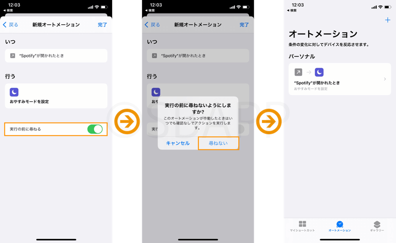 - 「実行の前に尋ねないようにしますか?」で尋ねないをタップ