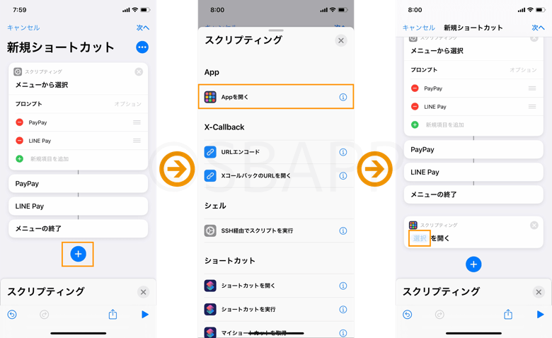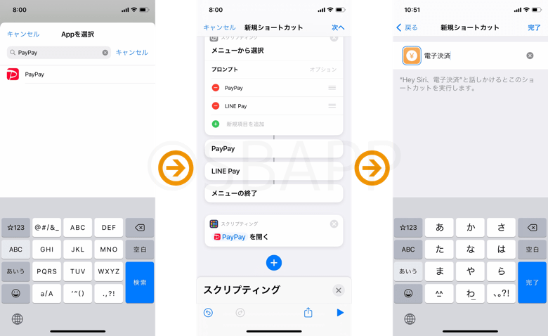 iOS14の背面タップ機能を使って電子決済アプリを起動する場合、まずショートカットアプリで「電子決済アプリを起動するためのショートカット」を作る必要があります。