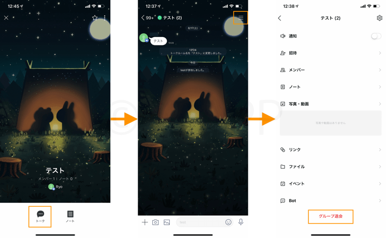 - トーク退出をタップ